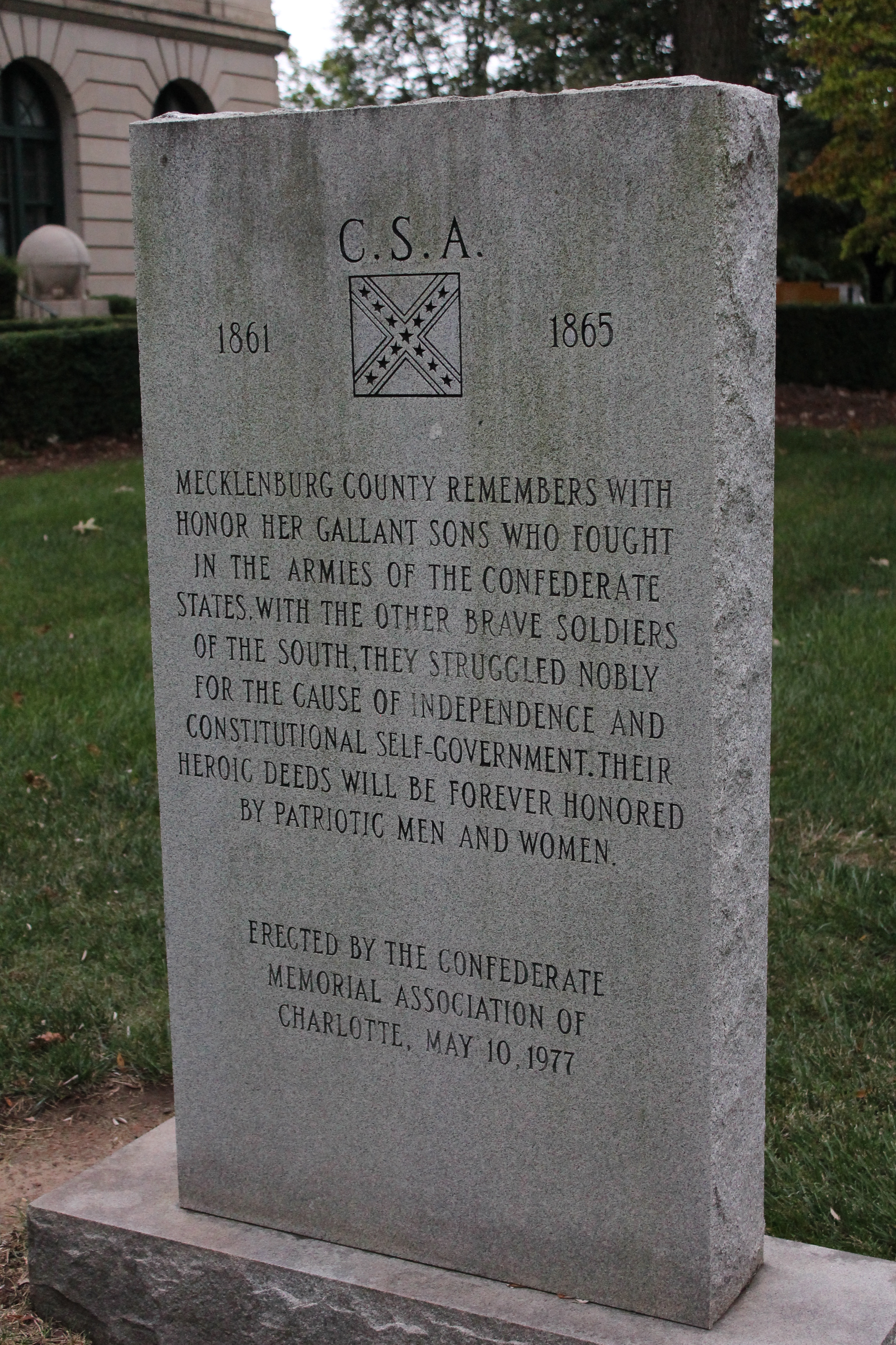 There’s definitely a Southern feel to this place, even though a lot of New Englanders are retiring here for the low property taxes. It was a border state in the Civil War and one of the first cities to desegregate, but racism is still palpable here in a way that feels different than north of the Mason-Dixon line. I passed City Hall today and found a stone erected in 1977 to commemorate the “heroic deeds” of the Confederate soldiers.